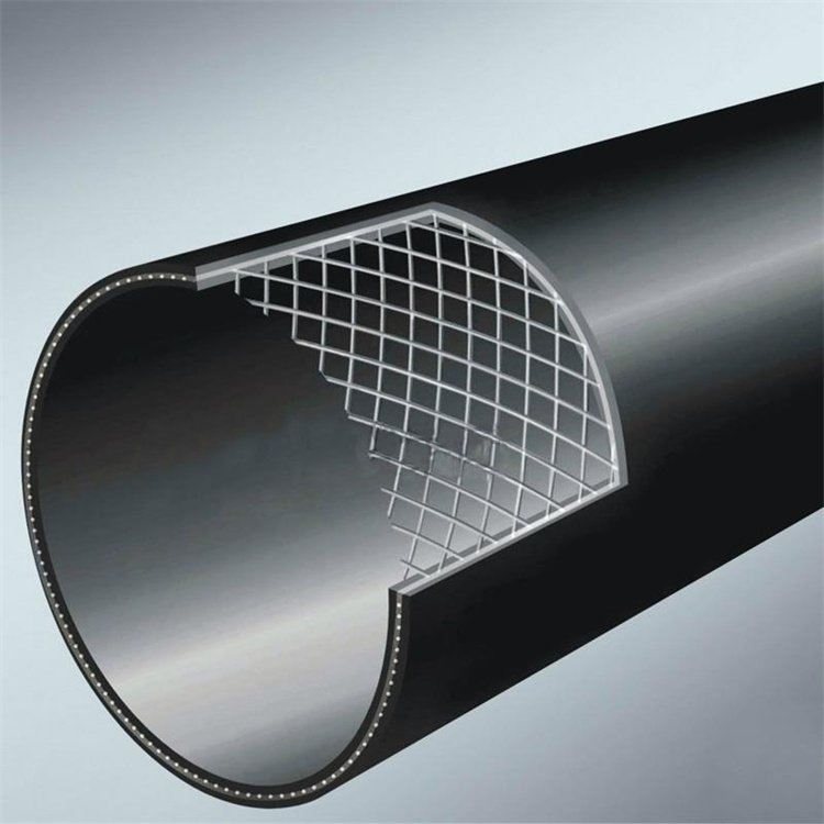 HDPE钢丝网骨架塑料复合管分为三层:芯管、钢丝层和pe外层。芯管和钢丝缠绕层用于承受管道内压,外层pe层主要用于焊接连接。芯层和外层PE层采用PE80/PE100级原料热熔挤出成型,钢丝缠绕层采用HDPE改性材料和左右缠绕钢丝。改性后的HDPE和HDPE在加热条件下可以融为一体。同时,其极性键与钢(200N/25mm,ASTMD903)具有非常强的结合性能。由于采用了优质材料和先进的生产工艺,具有更高的抗压能力。同时,HDPE钢丝网骨架塑料复合管具有优异的柔韧性,更适用于长距离埋地供水和输气管道系统。
